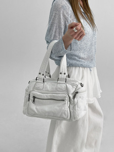 现货 韩国代购复古柔软皮革机车托特包单肩手提斜挎包2025年新款