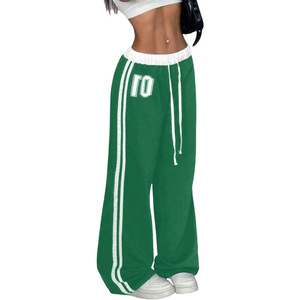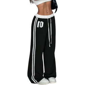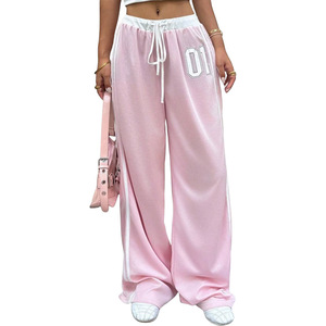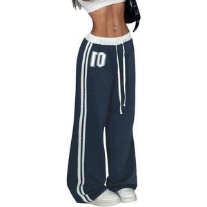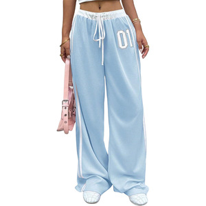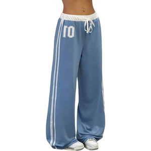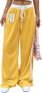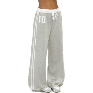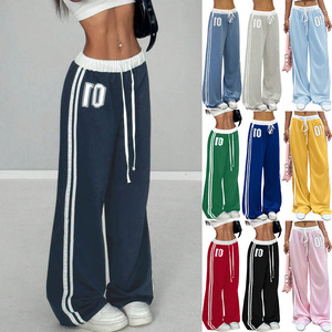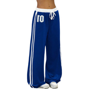 跨境欧美外贸休闲运动女装抽绳阔腿裤宽松直筒慢跑健身瑜伽长裤女