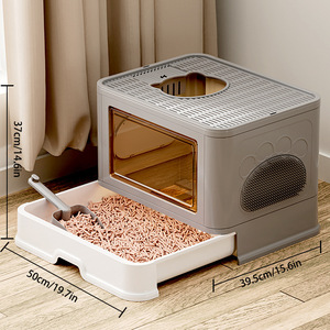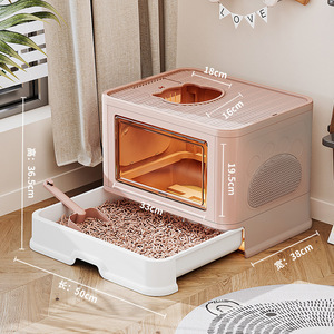 跨境抽屉式折叠猫砂盆全封闭式防外溅猫厕所双门顶出顶开门