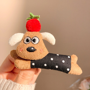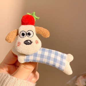 睡衣派对~黑色格子小狗发夹女高级感慵懒风可爱边夹侧边夹子头饰