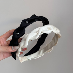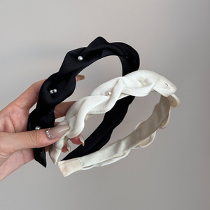 复古法式珍珠褶皱发箍女2025年新款高级感日常外戴高颅顶宽边头箍