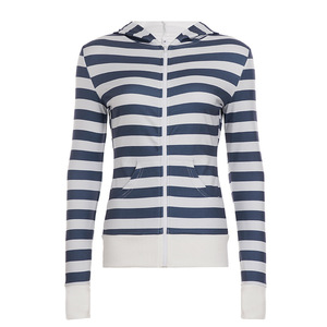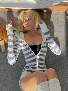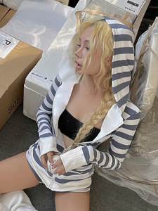 美式街头风撞色条纹印花拉链连帽卫衣外套女2025秋冬跨境休闲上衣