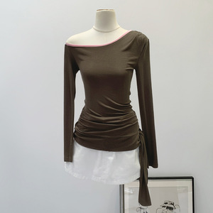 品牌批发纯欲风斜肩长袖T恤女2025春季新款设计感小众修身显瘦衣