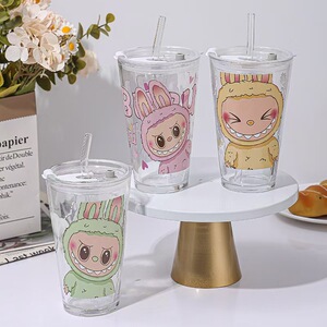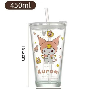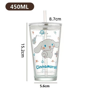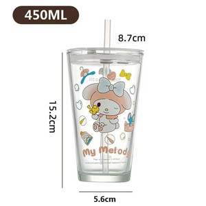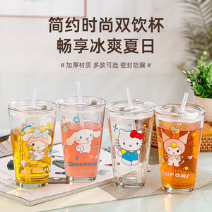 三丽鸥卡通刻度儿童牛奶杯少女心饮料ins风带盖高颜值玻璃吸管杯