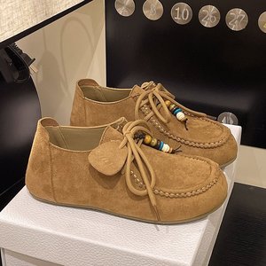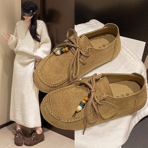2025秋季新内增高款勃肯单鞋袋鼠鞋女春秋复古风反绒乐福单鞋女