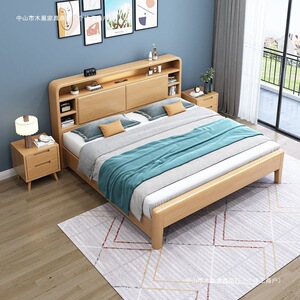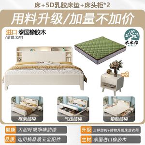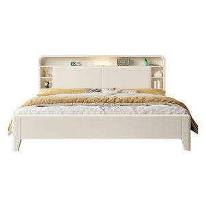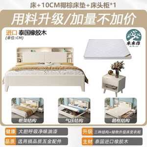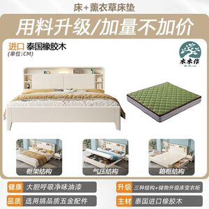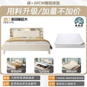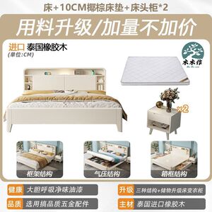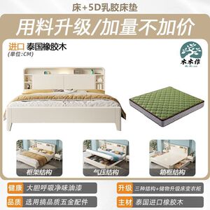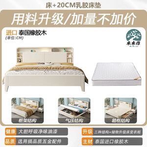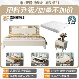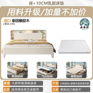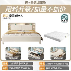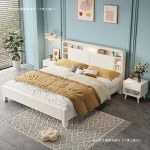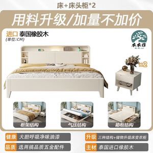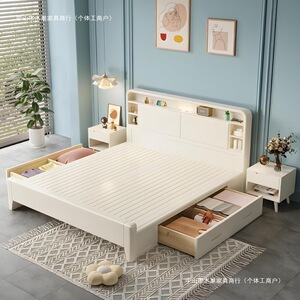 奶油风北欧现代简约白色实木床储物床1.8双人床家用主卧储物床