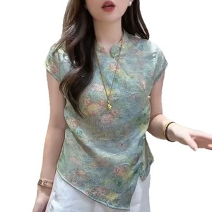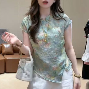香云纱国风上衣真丝桑蚕丝提花短袖小衫夏季新中式盘扣立领衬衫女