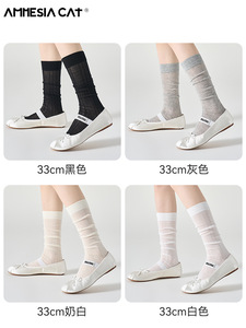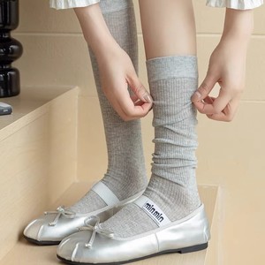 芭蕾风袜子女夏季薄款白色堆堆袜miu系中筒袜长筒长袜夏天小腿袜