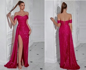 跨境新款珠片抹胸连衣裙高级感女装派对婚礼晚宴鱼尾长款晚礼服