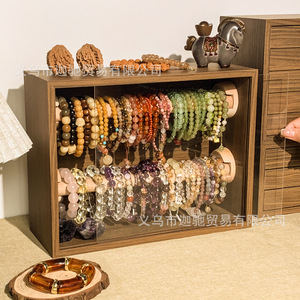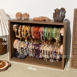 手串收纳盒桌面复古双层木纹首饰柜防尘珠宝文玩水晶手链展示架子