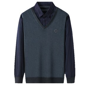 会再会秋季新款品牌男装休闲男士百搭舒适衬衫领薄款针织衫假两件