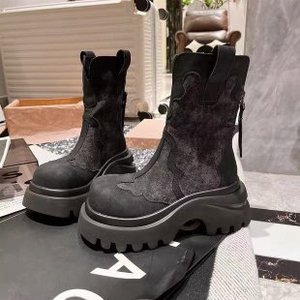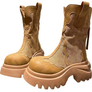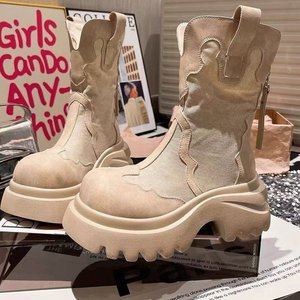 复古舒适牛仔大头厚底时装靴女2025新款小个子增高时装靴时装女款