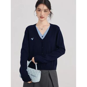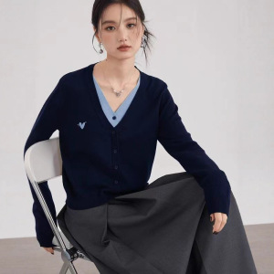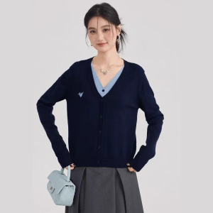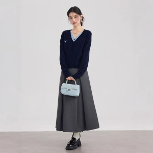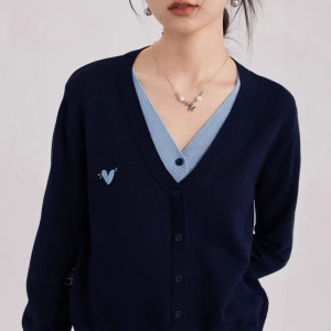 2025新款假两件针织衫上衣正肩毛衣女秋装设计感小众V领打底衫
