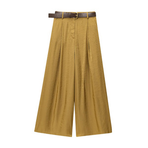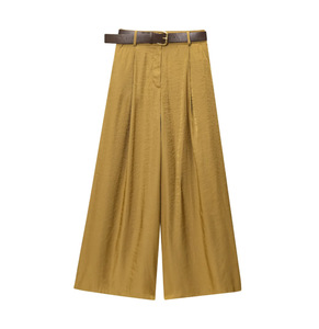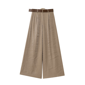外贸2025夏季新款女装欧美风百搭垂感配腰带高腰显瘦宽松阔腿裤