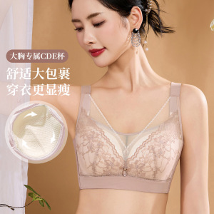轻薄大码女士内衣聚拢提拉防下垂防走光舒适透气蕾丝大胸显小文胸
