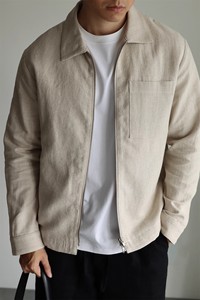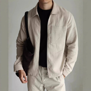 预售春秋新款亚麻设计感翻领夹克简约通勤衬衫式秋冬外套男士