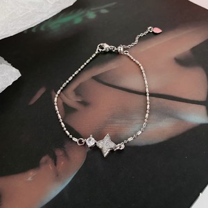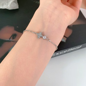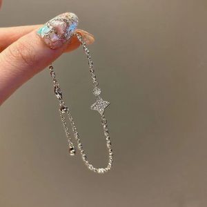 新款四芒星锆石抽拉银手链女秋冬百搭小众设计气质轻奢个性手饰