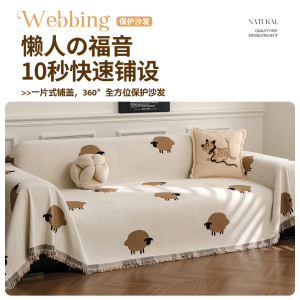 卡通可爱沙发盖布2025新款四季雪尼尔沙发巾全盖式流苏防猫抓坐垫
