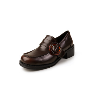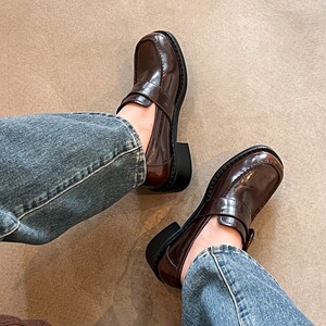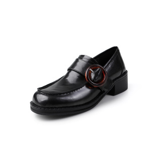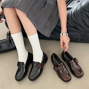 zijin家~复古圆扣圆头平底英伦风深口单鞋25年秋新款学院风乐福鞋