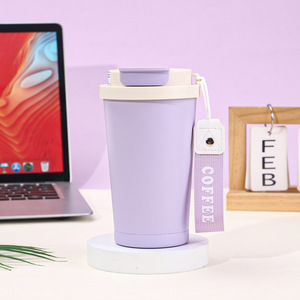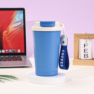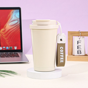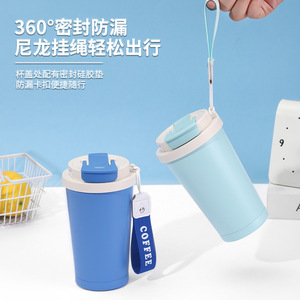 跨境高颜值咖啡杯316不锈钢内胆简约带提绳保温杯户外便携吸管杯