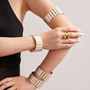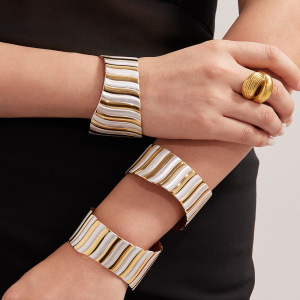 鑫艺鑫ins欧美新品个性夸张不锈钢开口手镯不规则波浪纹舒适手镯