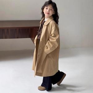 女童长款风衣新款春装外套春秋款大童英伦风童装女孩春季大衣