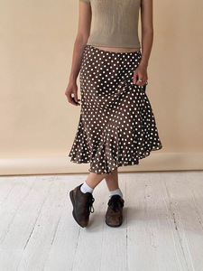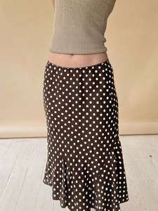 亚马逊新品波点印花低腰鱼尾裙欧美风修身显瘦荷叶边包臀裙短裙女