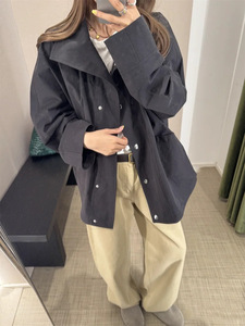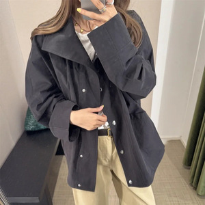 2025早秋新款TT北欧极简风蝙蝠袖薄款立领短款外套夹克风衣女
