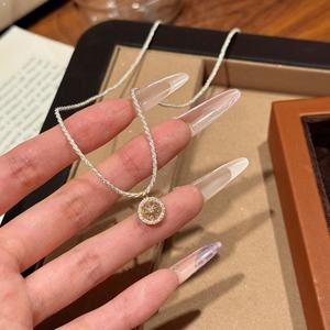跨境韩版复古罗盘吊坠项链轻奢高级感个性时尚锁骨链简约百搭项链