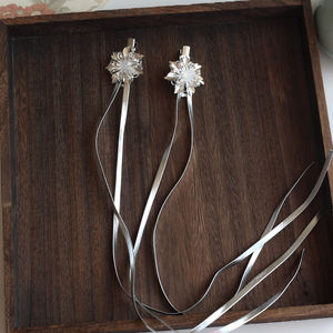 刘亦菲虞姬银色花朵颤枝发饰古风汉服饰品对夹氛围感飘带妆造配饰