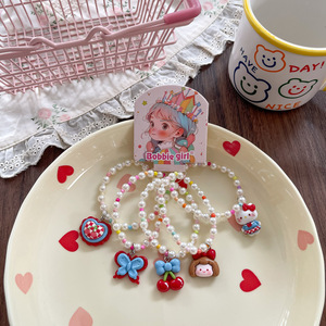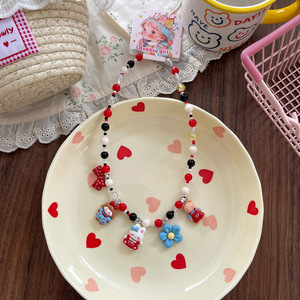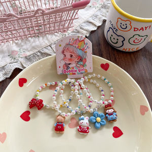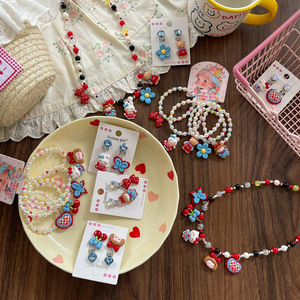 可爱卡通kt猫兔子女孩儿童项饰多巴胺彩色串珠手链耳夹宝宝配饰品
