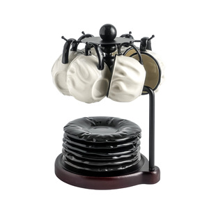圆形带串珠杯架-相思木褶皱6杯6碟(黑色)
