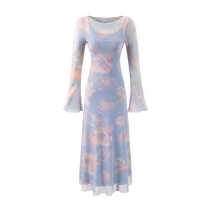 法式复古2025秋季新款女装印花气质修身网纱连衣裙内搭吊带裙套装