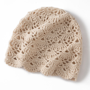 纯手工镂空钩花复古山羊绒包头帽文艺百搭休闲出游拍照针织帽女