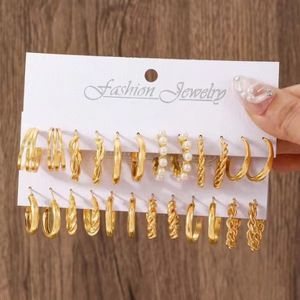 跨境热销时尚欧美风高级感耳圈复古几何金属心形女士耳环套装批发