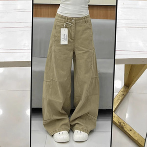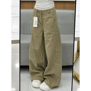 【韩牛】美式牛仔裤复古卡其色弯刀2025春季新款宽松百搭直筒裤子