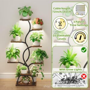 金属铁木8层室内植物架带生长灯适用于室内种植装饰盆栽摆放架