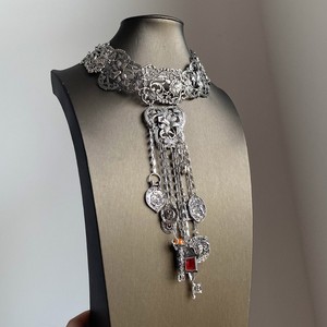 复古做旧民族风花纹流苏项链夸张个性镂空花纹几何吊坠个性颈链