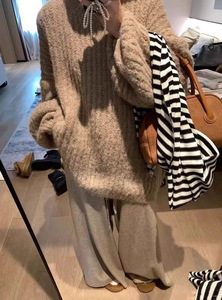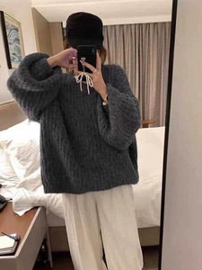 韩系慵懒风灯笼袖毛衣套头女2025秋冬新款高级感软糯针织衫上衣潮