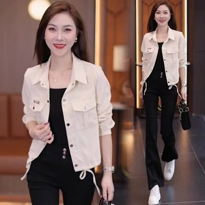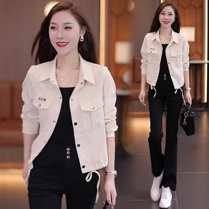 小个子妈妈外套2025秋季新款简约百搭减龄气质翻领纯色洋气矮个子