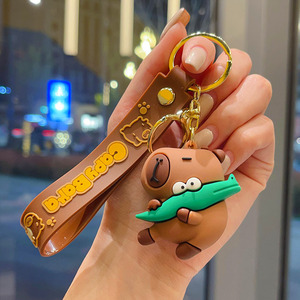 跨境卡皮巴拉钥匙扣水豚君钥匙链抓娃机小礼品汽车书包配饰批发