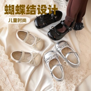 英伦风女童公主鞋魔术贴皮鞋舒适防滑软底蝴蝶结单鞋宝宝学步鞋