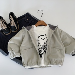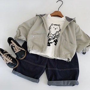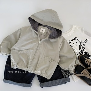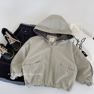 麦宝儿童外套2025秋季新款韩版男童纯色连帽夹克男孩洋气秋装批发