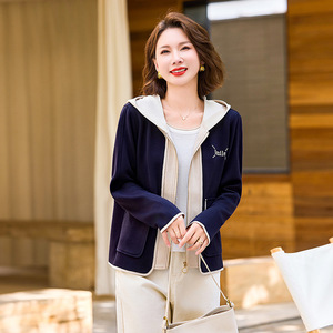 妈妈秋装外套女新款中老年女装春秋洋气连帽卫衣宽松休闲夹克上衣