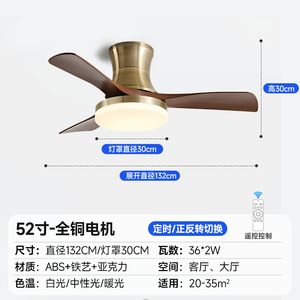 52寸三叶铜本色+胡桃木ABS扇叶《吸顶款》