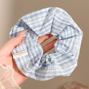 浅蓝格纹大肠发圈~约14cm