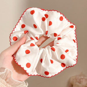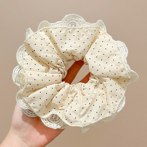 白色波点蕾丝大肠发圈~约19cm