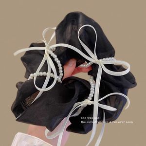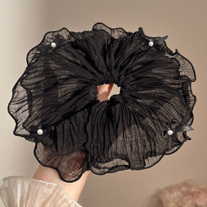 黑色网纱珍珠大肠发圈~约11cm