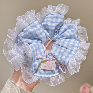 蕾丝浅格纹大肠发圈~约14cm