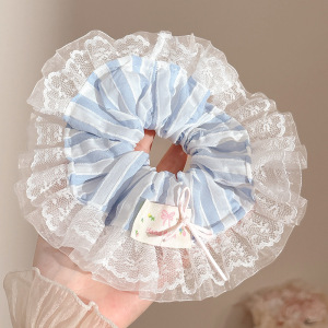 蕾丝深格纹大肠发圈~约14cm
